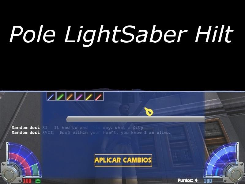 INSTALLATION INSTRUCTIONS: Put the file Pole Saber.pk3 in your Star Wars Jedi Academy/Gamedata/Base And play this saber a lot XD, jajaja kick the bots.