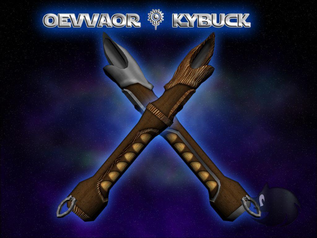 This are 2 wooden lightsabers named Oeavvaor and Kybuck