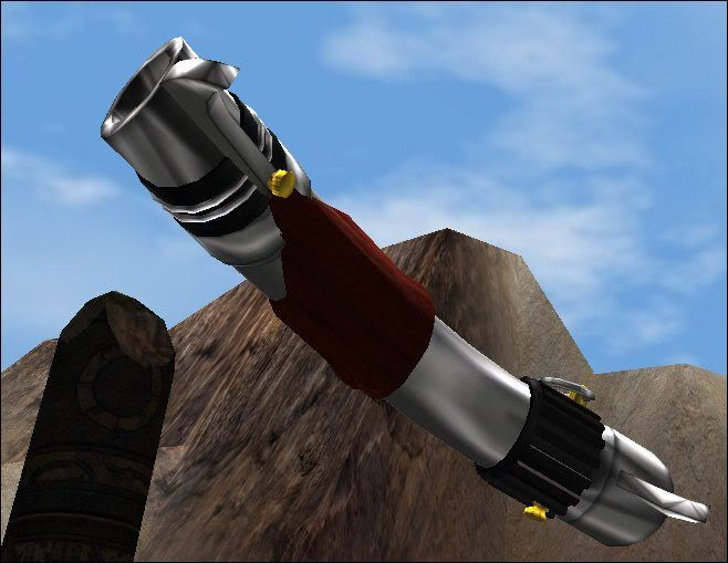 "...My knowledge of Darth Bane comes from the brilliant writing of Drew Karpyshyn. For those who have read his novels, you will know that Darth Bane was given a special curved lightsaber by his Master on Korriban. This lightsaber fit Bane�s physically imposing style of fighting. Therefore it has always irritated me that the common Bane lightsaber showing up among saber enthusiasts was a straight saber hilt (as seen in the comics). This became my cause; to bring Darth Bane�s lightsaber to life, in keeping with Drew Karpyshyn�s vision." (genesiscustomsabers.com)