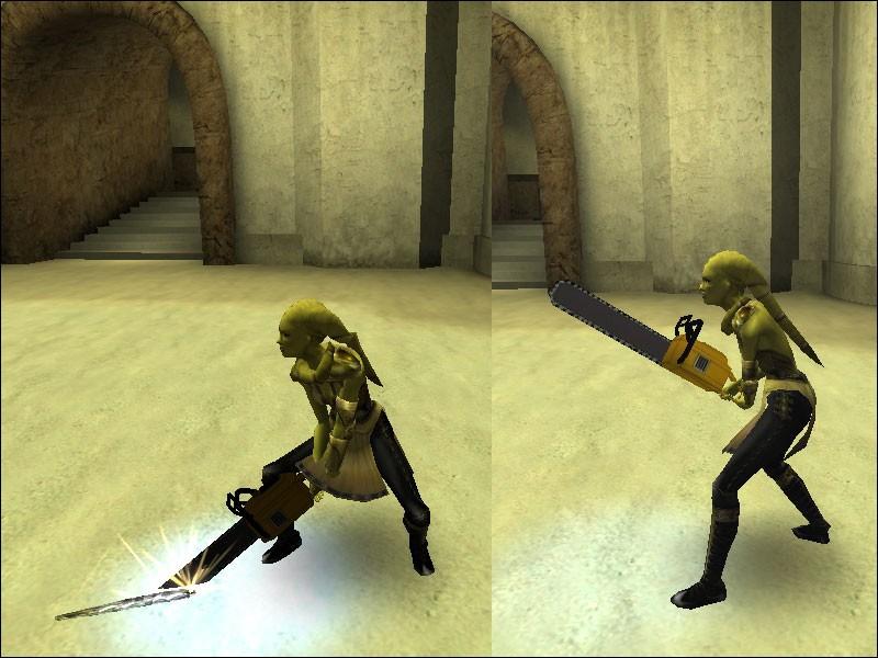 Replaces the single player lightsaber with this nifty chainsaw! The blue blade is replaced, so if you want to see the blade sticking out of the saw you'll have to use another colour. The skin is kinda crappy but its the best I could do (and if somebody can do shaders, and would like to for this chainsaw, please contact me). I hope you like the sounds as much as I do =)
