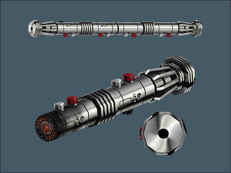 This project was started as a request by V4mpiRR, who asked me if I would make a damaged version of Alaris' maul_saber. While I didn't end up using his model, the texture for it was almost perfect, so I mapped out the new model to fit a variation of that texture, and sought permission from Alaris to use the altered textures.