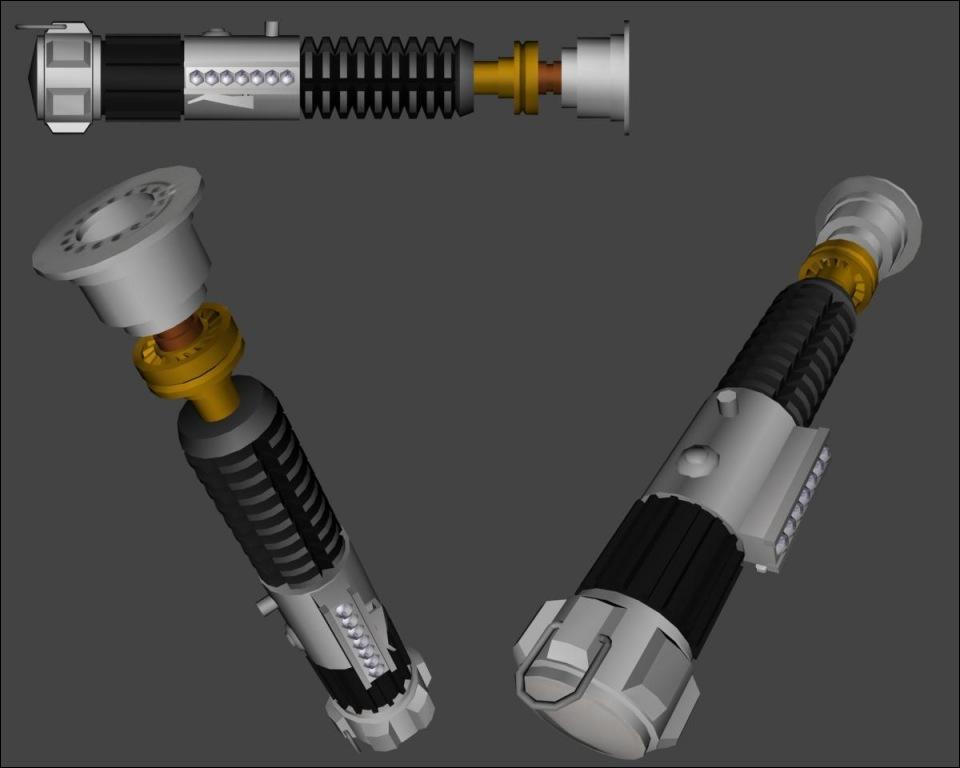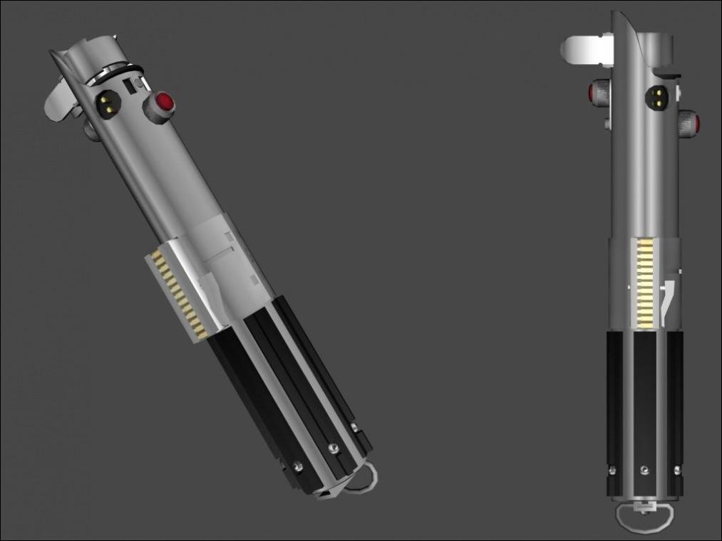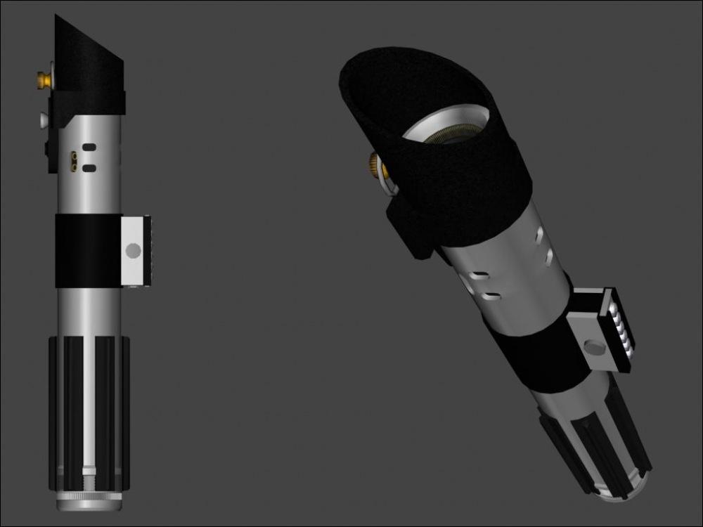 I learned how to make more detailed hilts and add shaders and wanted to redo my Luke Skywalker saber. I wound up making all the classic trilogy sabers. The polygon count got a little away from me. The total count is: