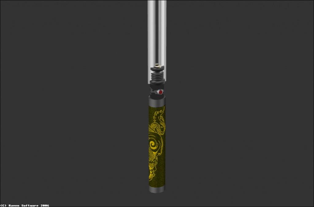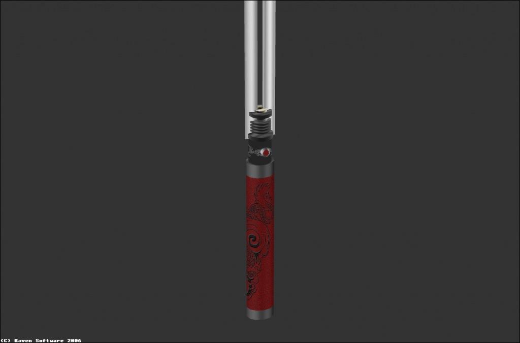 Description: This is my first attempt at building a saber hilt but I am very pleased with it considering the headache I went through to just figure out the tags. Let me just say that gmax is the way to go for compiling an md3. The concept I was going for was a blade saber hybrid. I used a split blade concept that resembles a Katana blade which allows the light saber to extend between the blades. I wanted to keep the weapon simple and somewhat elegant. I also added the light saber tech section with activation button. And the hand grip portion features a dragon embedded into the handgrip. There are four versions to choose from: black/silver/w silver, green/gold/w darker silver, red/black/ w darker silver, and a white bone like hilt with gold. I just want to thank anyone who posted anything about building a saber hilt because I am sure I read through your post at one point in time.