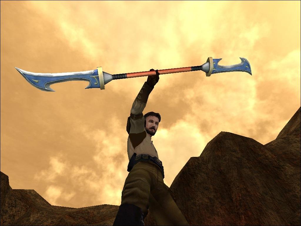 This is the duel blade staff, as seen in Prince of Persia: The Sands of Time. Apparently... I've never played it. This weapon was a request which I decided to honor, because it's a very cool weapon.