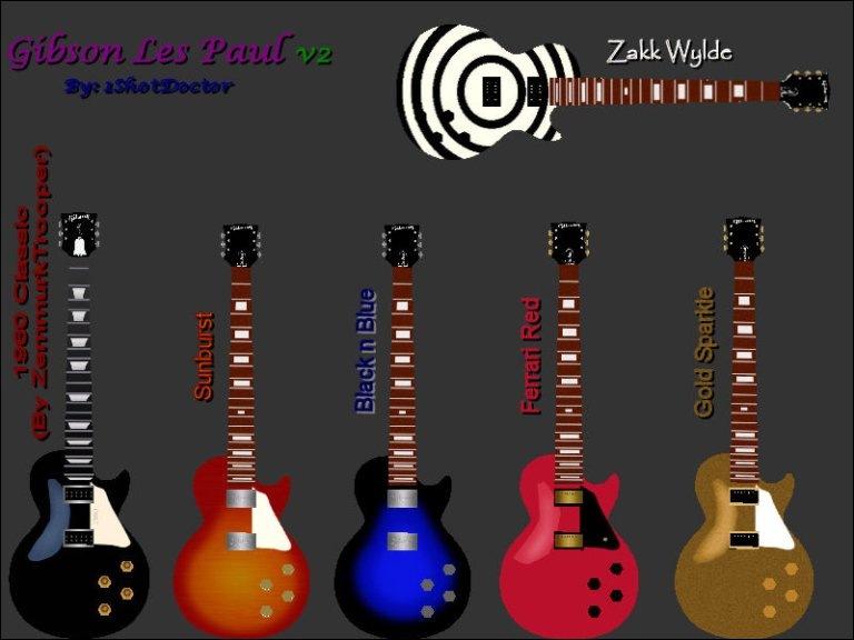 Skins: If you get tired of the vintage look, put one of the skins in your base folder (do not delete the "Gibson Les Paul V2.pk3") and wala! New skin. If you want to change skins again, delete the old one and add a new one. If you want to go back to vintage, remove all Les Paul skins from your base folder.