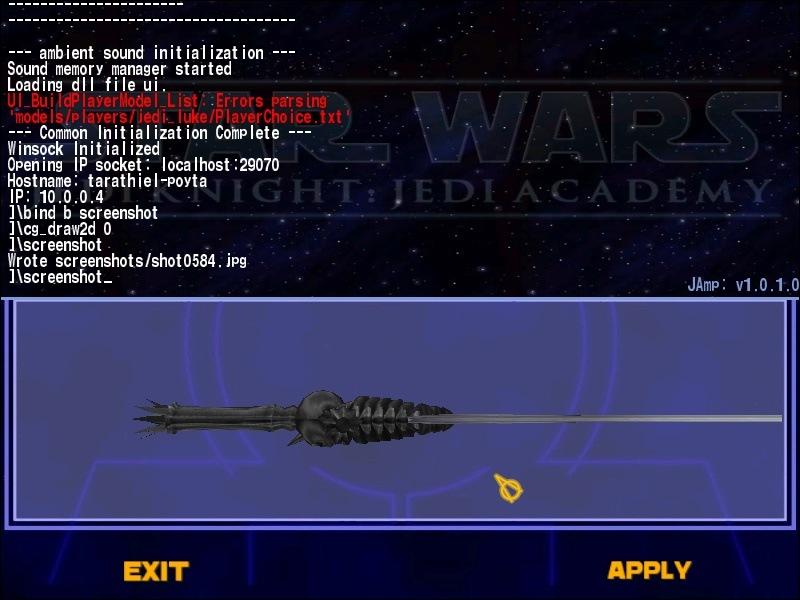 Toshi's Anakin or Vader as my playermodel, it crashed the game and I got the usual ran out of
