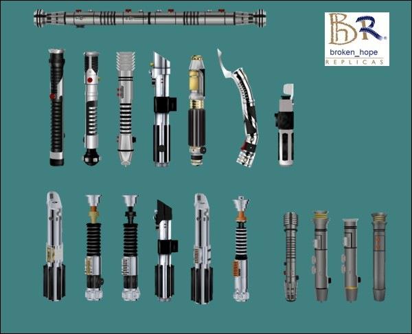 This is every Hilt from all 6 movies minus the Sidious hilt due to the fact that there arent any good images of it yet. Half of these hilts have been re-modelled & scaled correctly to actual appearence & the other half built from scratch.