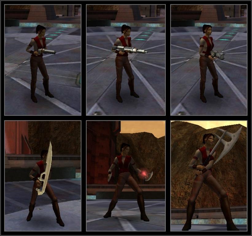 DESCRIPTION: This is a group of 6 weapons based on the popular MMO "Star Wars Galaxies," including 3 new sabers and 3 guns.
