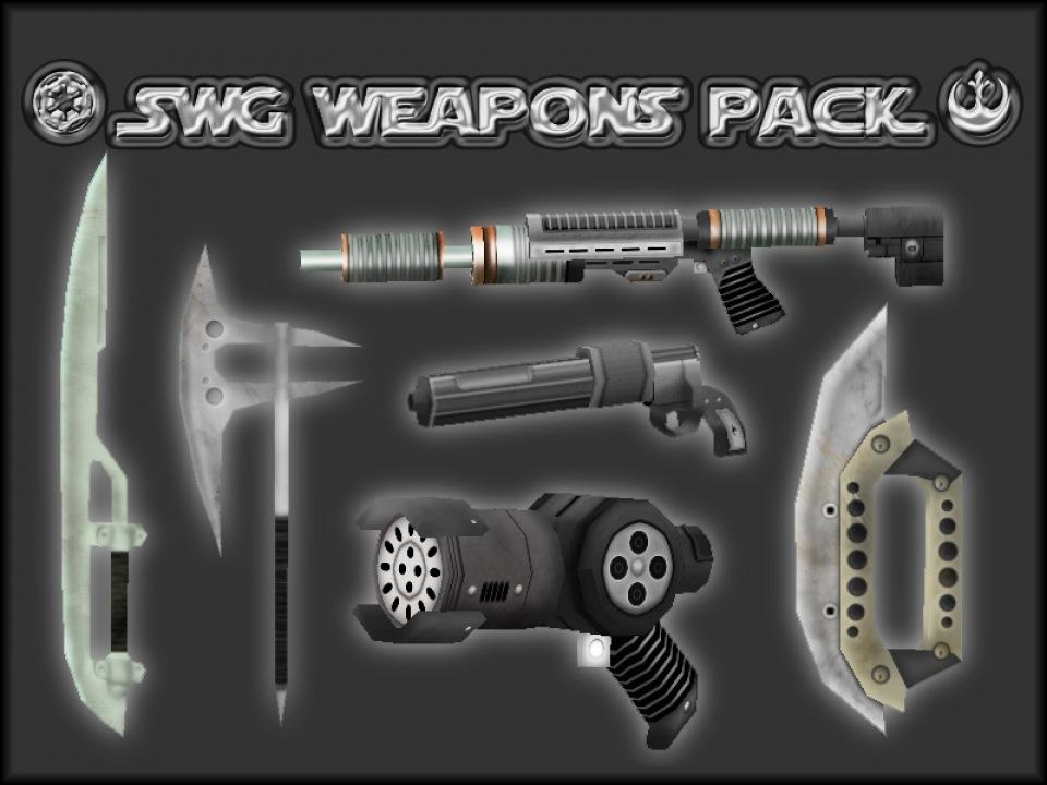 NOTE: THESE WEAPONS MAY NOT BE PUBLICLY ALTERED OR RELEASED IN ANY FORMAT WITHOUT THE AUTHOR'S CONSENT. THESE WEAPONS MAY ALSO NOT BE UPLOADED TO PCGAMEMODS.COM IN ANY WAY, AT THE AUTHOR'S REQUEST. ALL MATERIAL, UNLESS OTHERWISE NOTED, IS ORIGINAL MATERIAL. NO MODELS HAVE BEEN PORTED IN ANY WAY FROM STAR WARS GALAXIES.