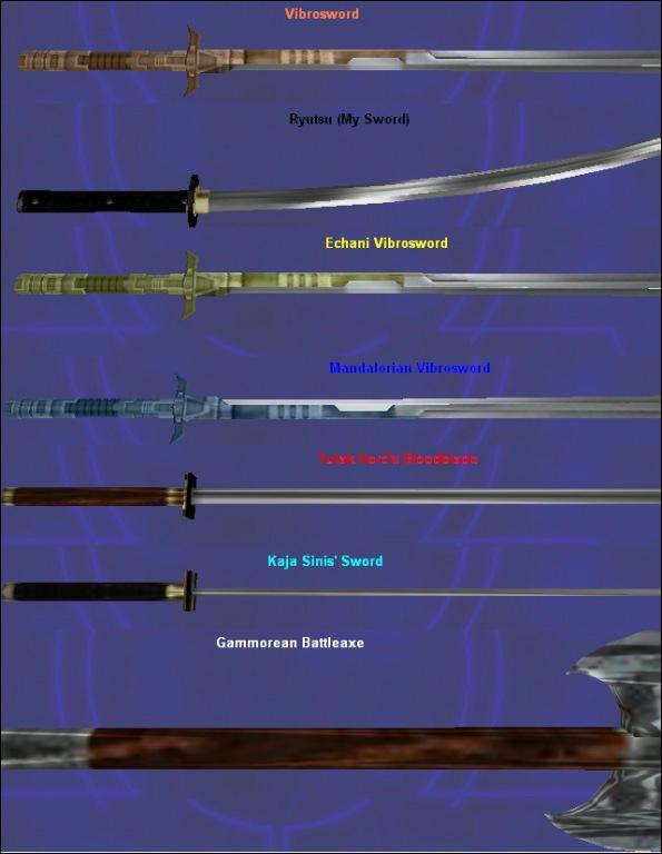 Mandalorian Vibrosword - Mandalorians Modified the Vibrosword to suit there more agressive form of Melee Combat. Heavier and Stronger but also slower to swing.