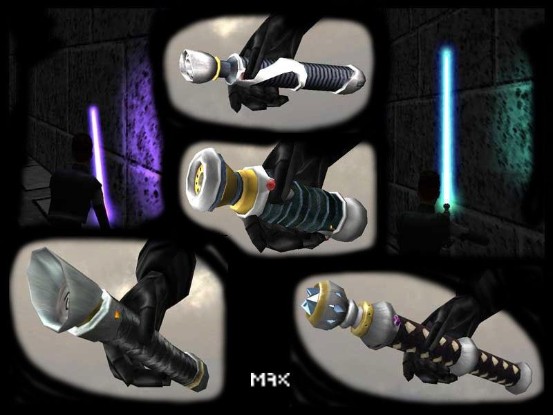 splisten and evenbocht have been published ("max_saber12") but with the two blades they where limited to two fixed styles and did not really work for multiplayer - so i made singleblade-versions for the menu;