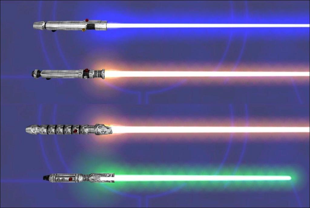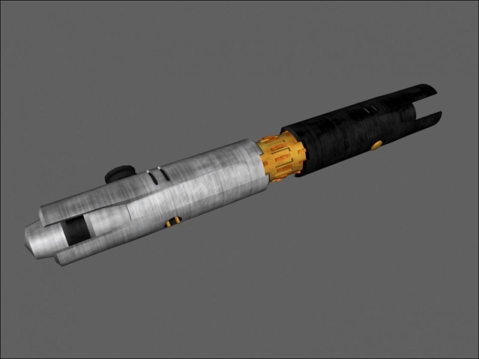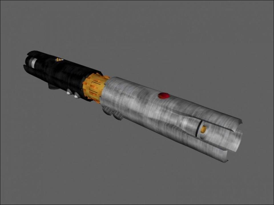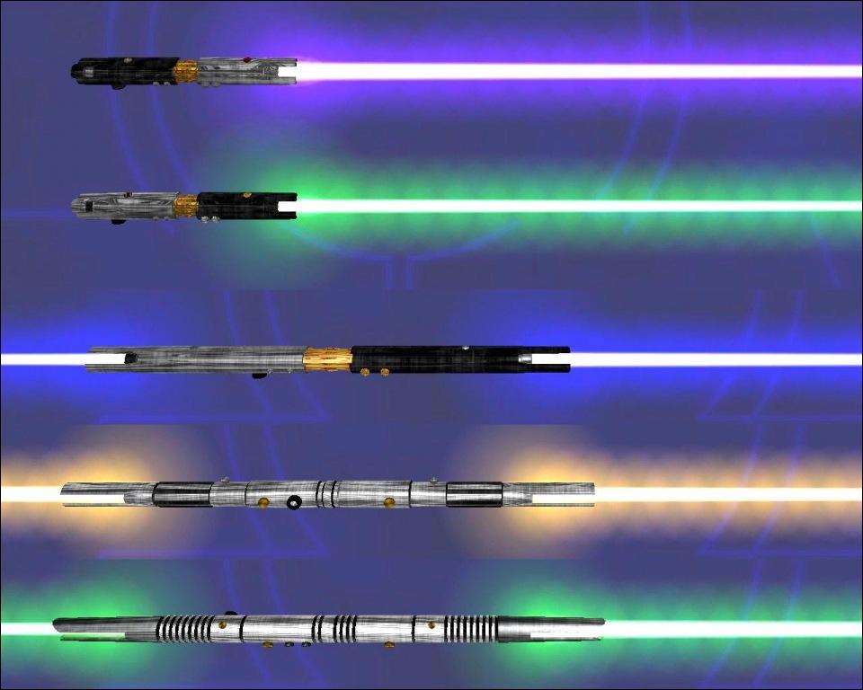 I wanted to make high polygon versions of the sabers from KotOR as well as a completely original saber for Revan. Each saber comes in two versions and are named for various Jedi in the game. The Malak and Vandar sabers have two blade lengths; long and regular for Malak, regular and short for Vandar. The Revan design got away from me (again). It comes in three versions: Light, Dark and Staff. I wouldn't put too many of those on screen at once. The other sabers have a much more reasonable polygon count.