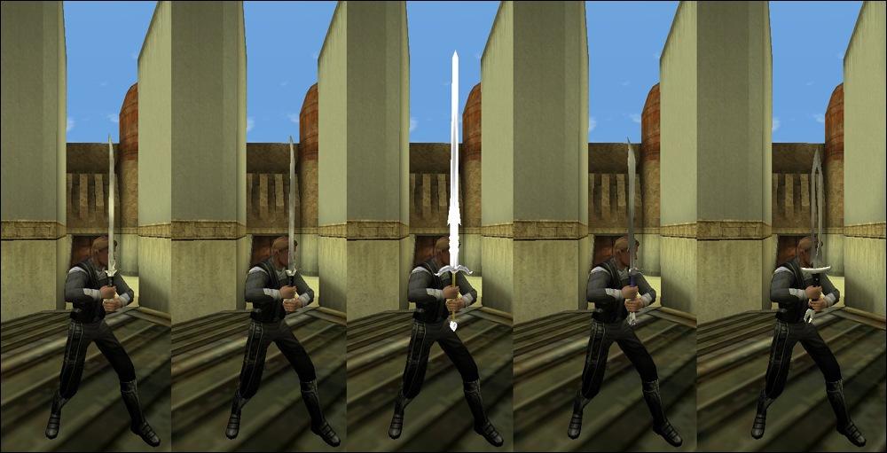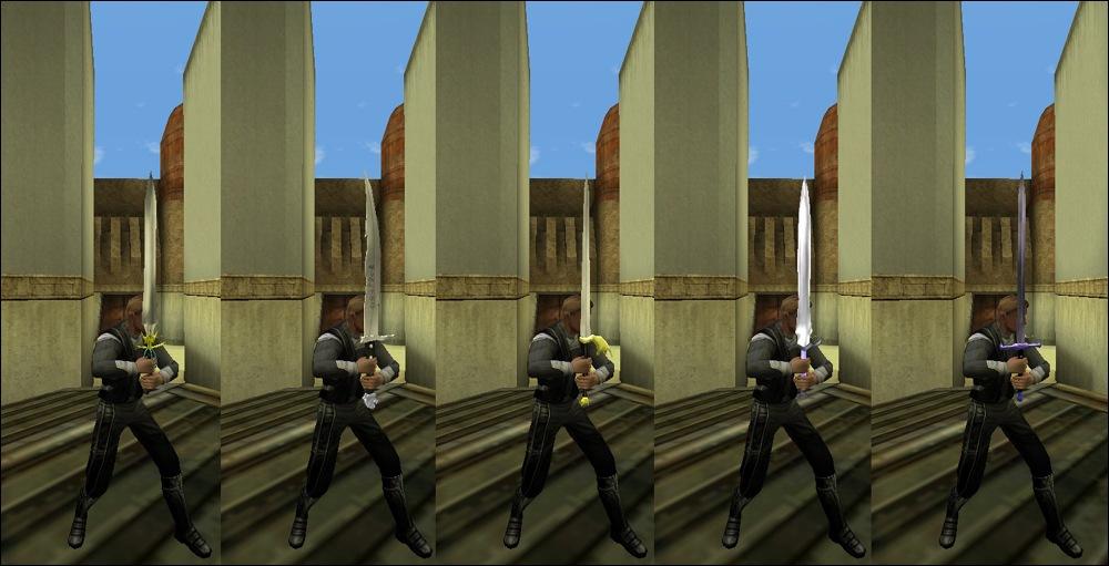 There's been nearly no change to the swords in the original pack. Both have been scaled down, had their blades made thinner and they now have new enviro maps. There's been no change to the holster, so I saw no point in adding it to this release.