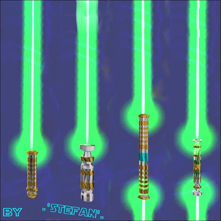 DESCRIPTION**: This is a Saberpack for the Vortex Jedi Masters Clan. There are 4 Sabers in it. 1 Single Saber for Council Members, 1 Staff for Council Members, 1 Single Saber for Jedi Knights/Masters and 1 Staff for Jedi Knights/Masters.