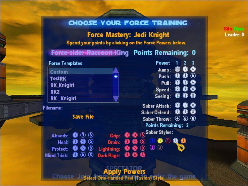code unreleased, and thus hampering my "dream" concept of the true Jedi Knight