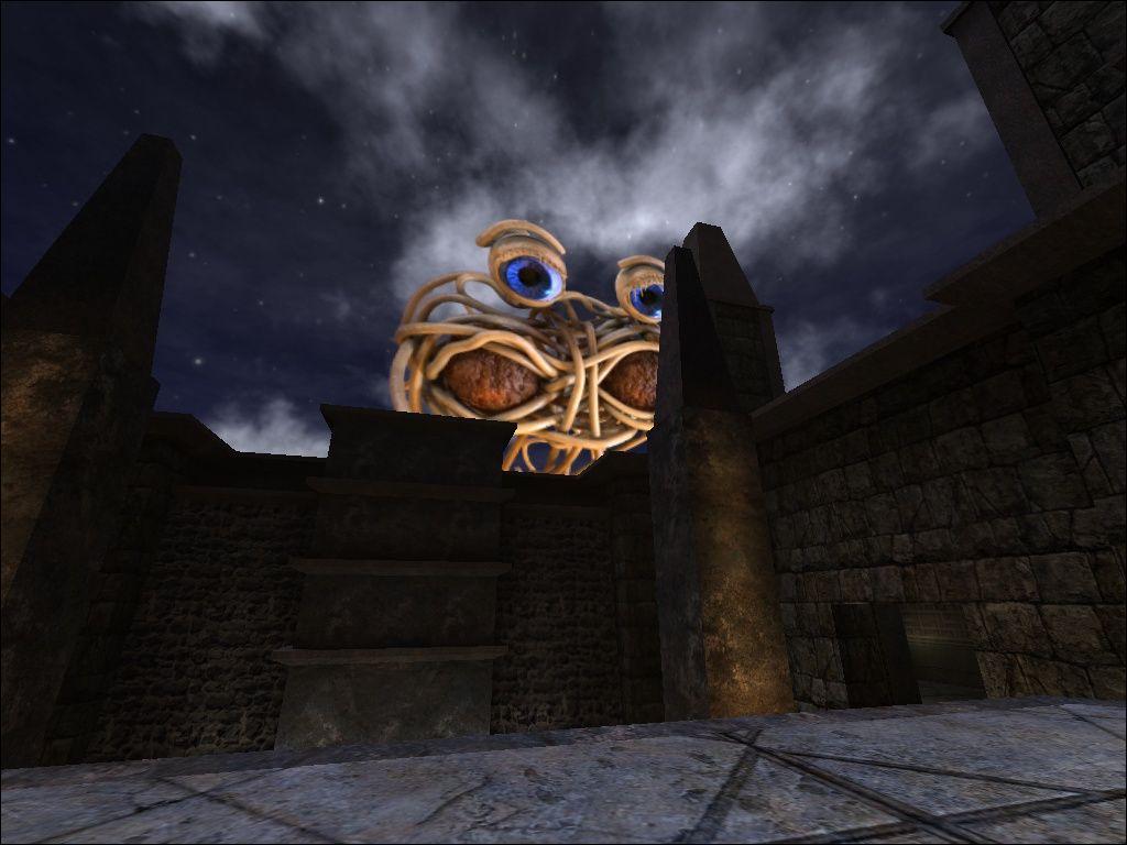 Inspired by Kalek's awesome mod, I bring you: His Divine Noodliness, in your skybox, in FFA 1-5. That's basically what this mod does.