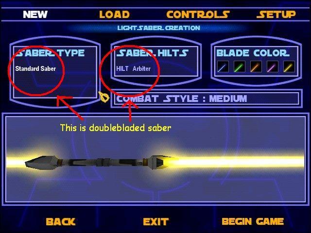 When you start game you have option to pick one of five or six sabers(singlebladed)