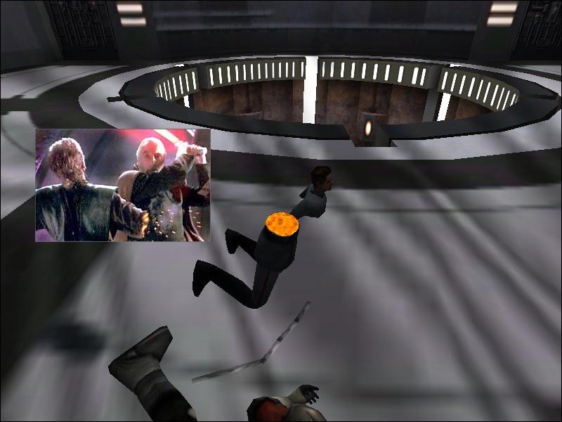 DESCRIPTION**:This mini-mod basically changes saber wounds where you've hacked something off (arm, leg, head ect.) to look more orangey and "fried n' singed" looking. I like it and the screenshot (showing the bit where alora lops rosh's arm off) shows the effect nicely. :-)