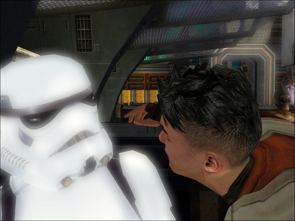 Game shaders have been modified, enabling playermodels, certian NPCs, force powers, some world objects, weapons and other stuff to have a soft blooming effect around them, similar to games like Brothers In Arms and Star Wars: Battlefront.
