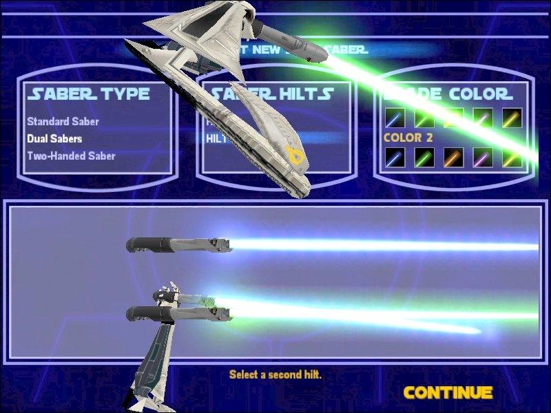 You can also select his four sabers and the electrostaff in the saber selection screen (after the Vjun mission in SP).