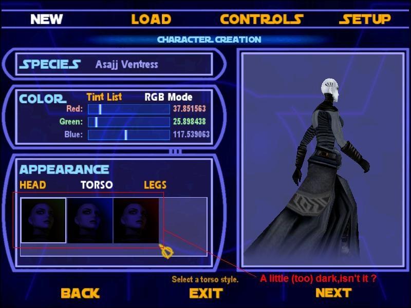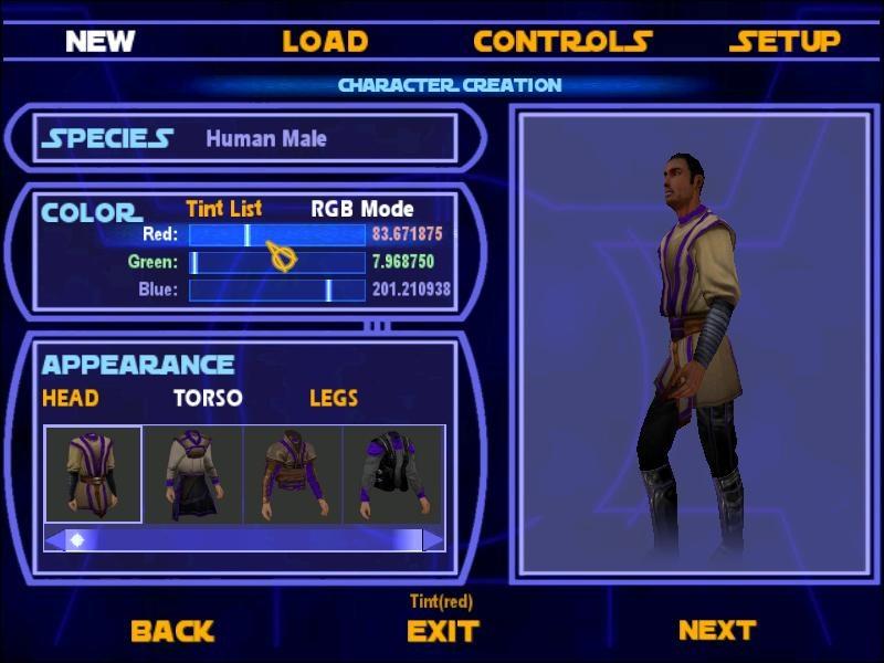 - May affect strangely extra models: many SP skins are not quite exactly defined as JK3 internal ones,so if you change the character tint to something else than white,the skin is not affected,but the icon is overlayed with this color.For example: if you select black,the icon can't be seen !