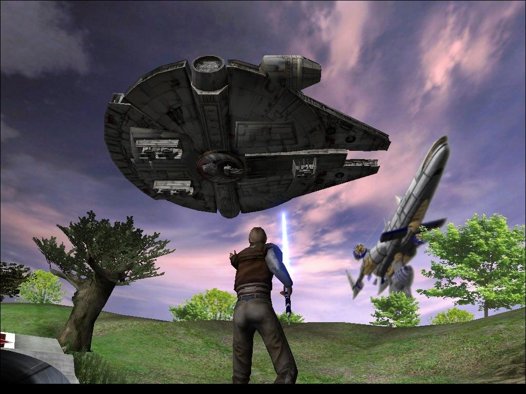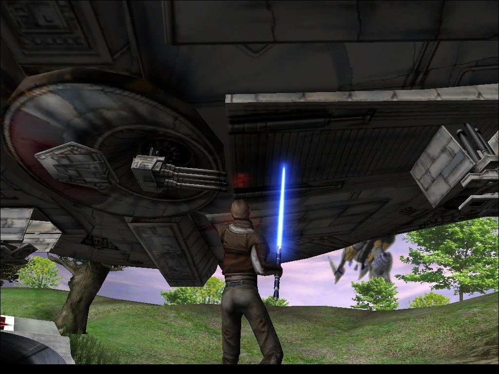 Now, this pack is a whole lot more fun in SP, where you can just flip out, give yourself a godly reserve of Force power and go wild. Unfortunately the MP portion of the game won't allow you to use two force powers at the same time (like grip and push, which is pretty much what this pack relies on), but they're still fun in online bouts. For extra enjoyment use a cheat to set the game's knockback level higher (g_knockback 4000 should be adequate, although 10000 and up is made of awesome) and take full advantage of your ability to push a half-ton crate into some poor shmuck's nose.