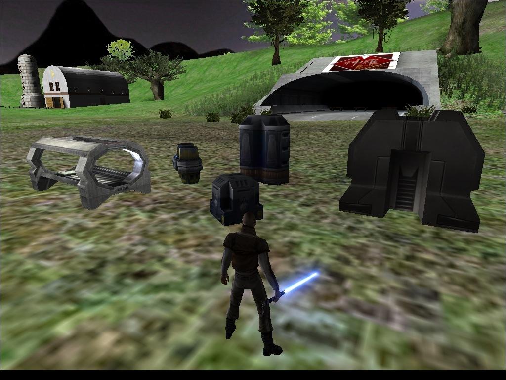 Remember how Yoda ripped the X-Wing out of the swamp in ESB? Ever wanted to follow his lead? Well, now you can! This pack here contains a collection of (mainly) baseJA map objects that have been tampered with and can now be gripped, pushed, pulled and generally used to smack others around. Great fun, I assure you.