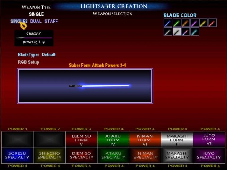 - 11 Specialty Saber Forms: Players can choose a specialization in a particular form and receive certain improved abilities (but will not have access to the full form selections).