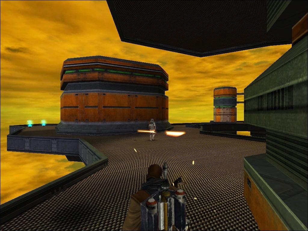 -You got BATTLESUIT powerups that can protect you againts Bryar pistol NUKE-bomb.