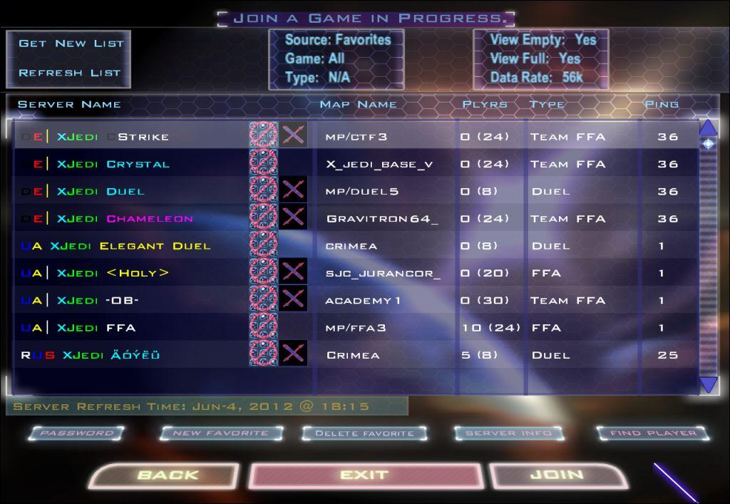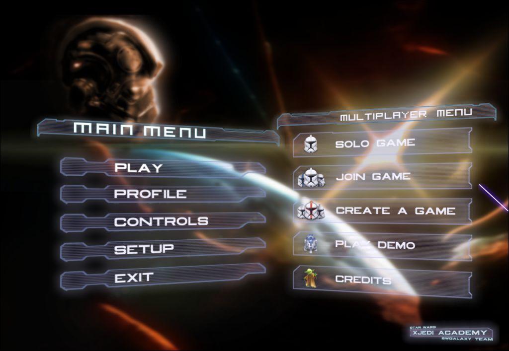 Complete replacement for JA MP GUI! Replaces ALL the multiplayer menus (Solo Game, Join Game etc.) to newest made by us. Please note that it has been developed only for Jedi Academy MP, not SP! And it has been tested on JA+ mod, so I don't know how it works on other mods. I'm sorry for that. If it works on different mods, please inform us!