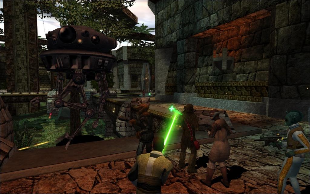 Kyle Katarn walks non-chalantly into the Massassi Temple to investigate. He finds a group of mercenaries are using it for a hideout. They aren't too happy to see a Jedi in their base...