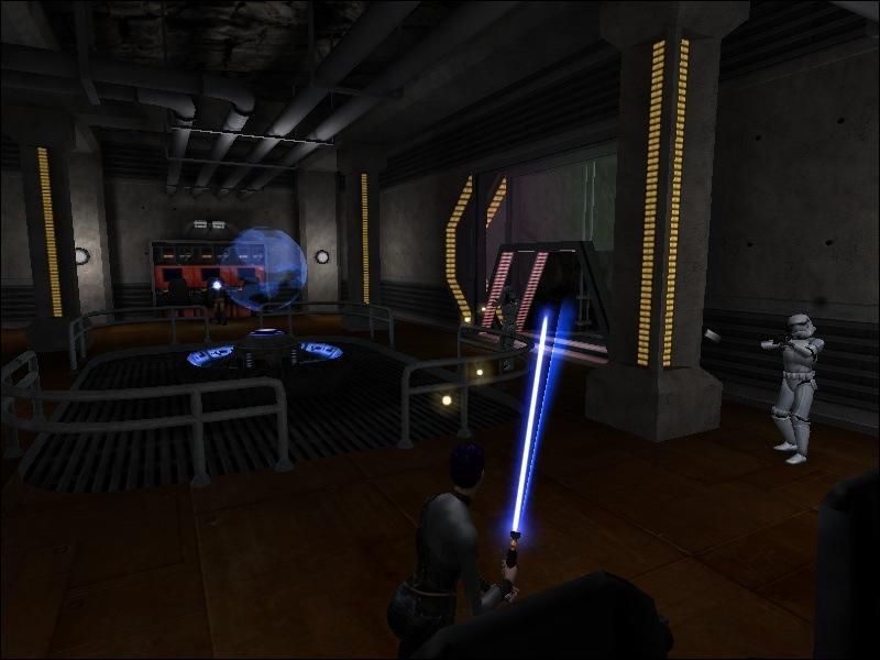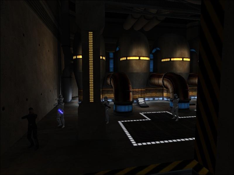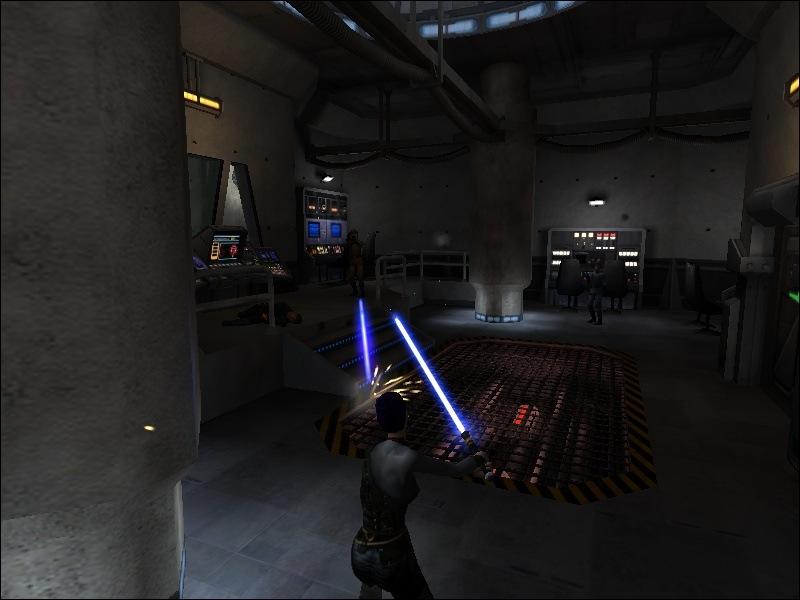 There're some interactive elements in this new level, that can be activated by force powers (push or pull). Try to use them at your advantage during a fight.