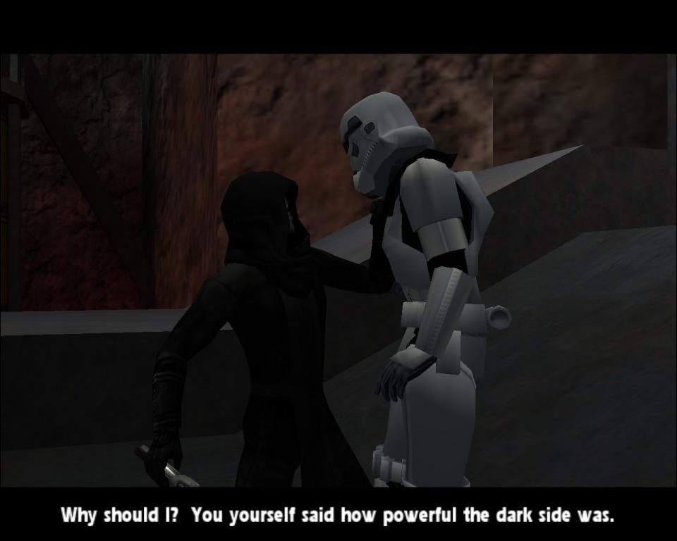 Description: I always thought Rosh Penin was annoying. Since most players also despise Stormtroopers I thought I could mix them together. In this mod Rosh is a Stormtrooper Commander. The backstory is Rosh a former high ranking Stormtrooper joins the Jedi academy and falls to the darkside (yada yada yada you know the terrible plotline Academy has).