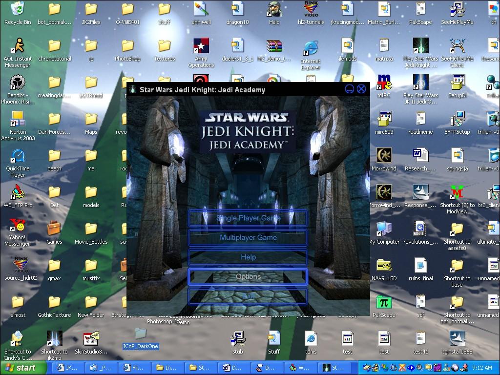 coolest, figured out how to make a start-up screen, and made it. The words Star Wars Jedi Knight Jedi Academy is taken