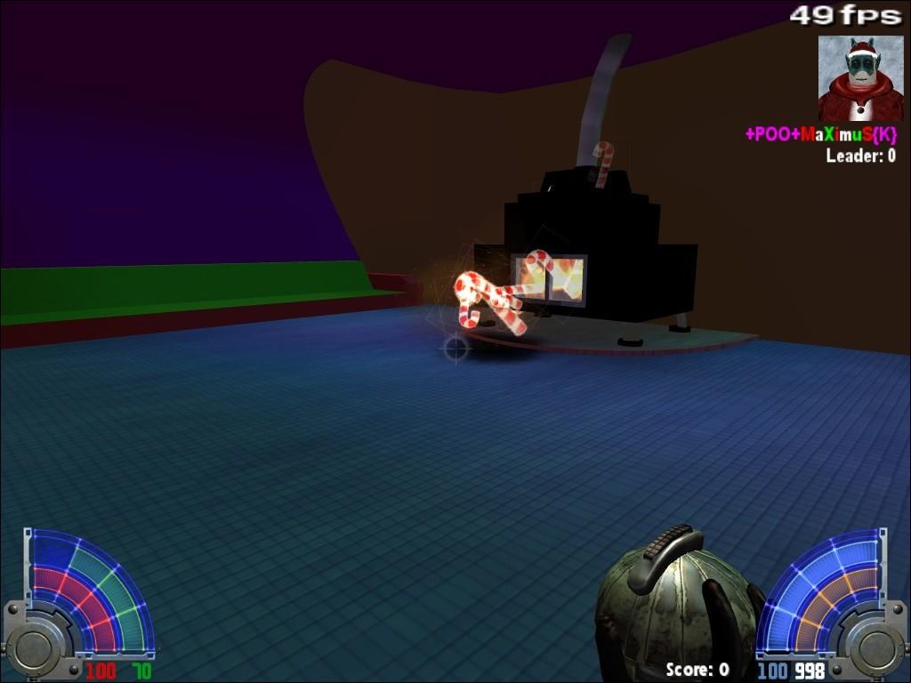 Just remove the Onobi&Reyor's_christmas_weapon_mod.pk3 from your Gamedata\base directory