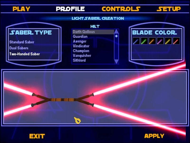 In MP the saber will show up in the menus and you can select it like a normal hilt, I haven't however worked out how to get it into the menu in single player, so to use the hilt in SP you have to enable cheats (helusobi 1) and then type in "saber dual_x" into the console without the Quotes, then, enjoy! When testing the saber I found it to be too powerful so I replaced the kata attack with the spin kick, I also disabled the roll-lunge move as when you did this you got impailed and it looked stupid, this does not affect any of the other sabers.