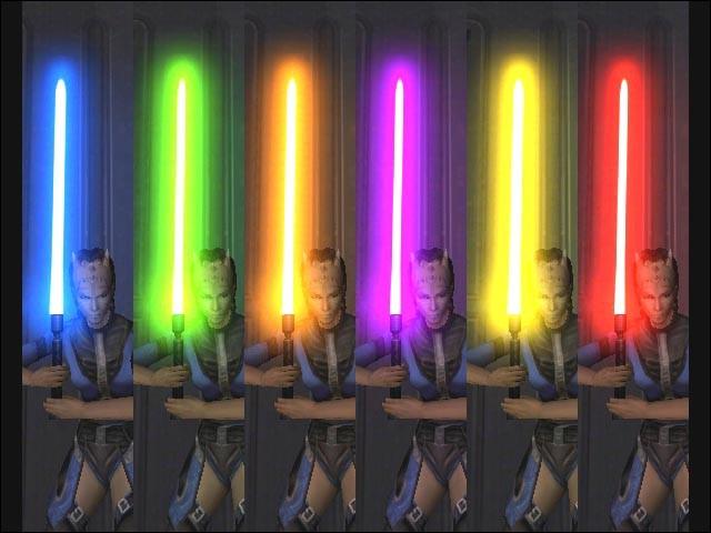 Functions: Improves the lightsaber blades by making blades exactly like in the movies, gives the lightsabers a more colorful glow, makes glows slightly larger than originals, gives new menu pictures (main menu now has Kit Fisto in the very center, when play or option buttons are pushed, two jedi stand in the background, Count Dooku appears on the SAVE OR DISCARD OPTIONS SCREEN, Obi-Wan Kenobi is seen on the lightsaber customization screen, there is a black window on the lightsaber blade screen so you can see the true blade color, and lightsaber flares have been improved to look just like in the movie.