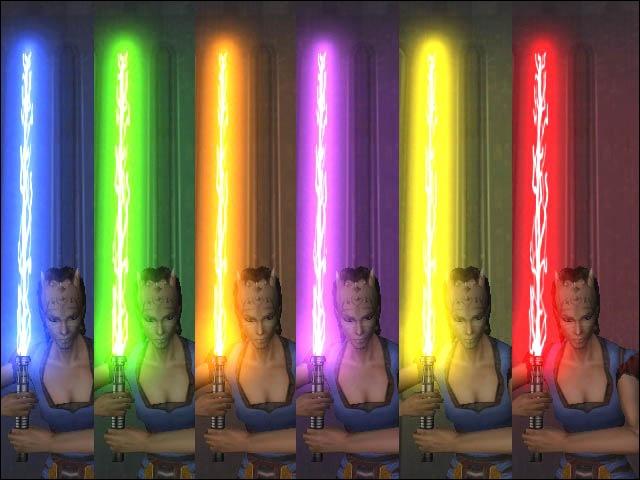 this mod makes the lightsaber into a bar of instable energy....and instead of a slid bar of light emitted energy....you have a negative unsolid looking bar of electricity and stuff.........i dint think long on this....so moving on, this chanes the trail of the saber aswell as the saber itself to electricity sparks and stuff and there is also a new menu tartup screen and in game menu but........yeah have fun.......also i hav other mods out there like the perfect saber mod.....and the flame saber md which is also really cool......ok cyas hunni :)