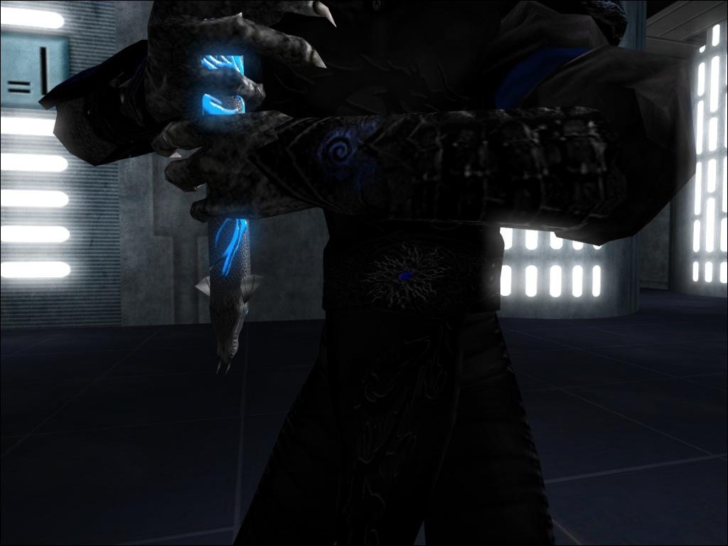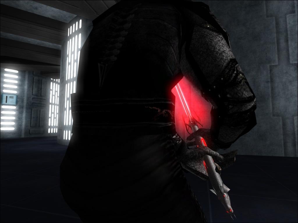 v2 notes: I simply resized the hilt so that it looks more natural on all characters. It was originally designed for Drakseye or Desann which is larger in stature when scaled up.