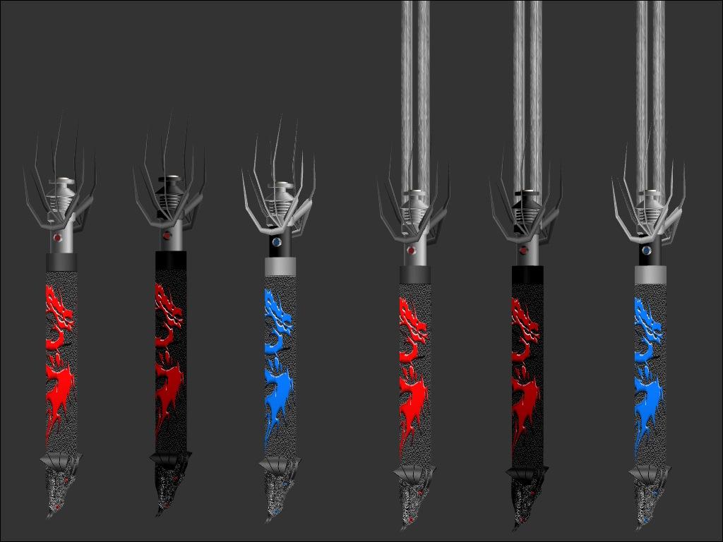 Description: This is an original saber hilt and blade concept that is designed to match up with the Drakseye skin for the Desann model I recently submitted. I used my previous submission the cable_blade as my foundation but have added some more exotic features such as the dragon head on the bottom of the hilt the wing skeletons at the top of the hilt and some glowing shaders for the handle. This isn't a terribly complex hilt but I did go through several revisions to get the right feel. I wanted something that combined gothic and asian sword design. There is a bladed version as before but this time I created a version that is without the blade for those of you that prefer saber hilts only. I hope you enjoy the weapon. If you like the Drakseye skin I created then I would suggest this saber package to pair up with it.