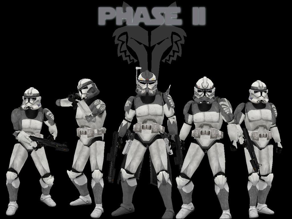 Due to a restriction in code, Phase II Commander Wolffe cannot be hurt when he is carrying the clone blaster by SoM3. This occurs in single player only. Phase II Wolffe also has some slight line issues on his face plate. This is due to there being two models being used for his face. I hope to fix this later.