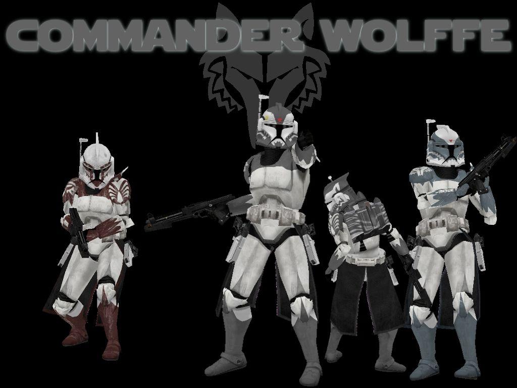 This pack includes the 104th Clone Trooper battalion other wise known as the Wolfpack. It includes the following skins: