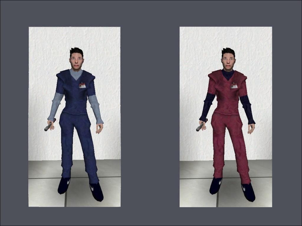 Has team colors (Blue: navy scrubs & Red: pink nurse scrubs)
