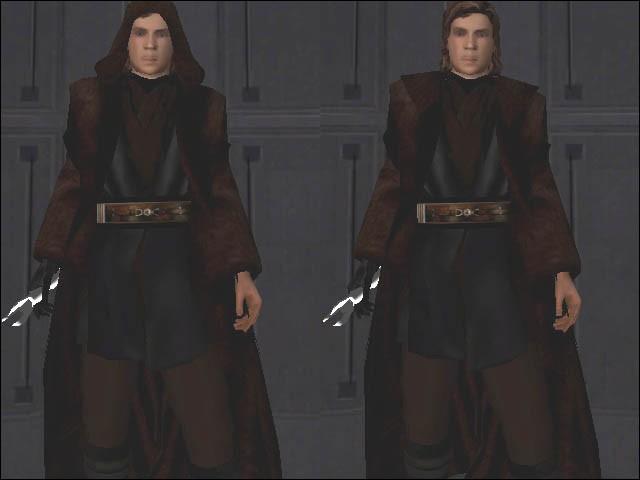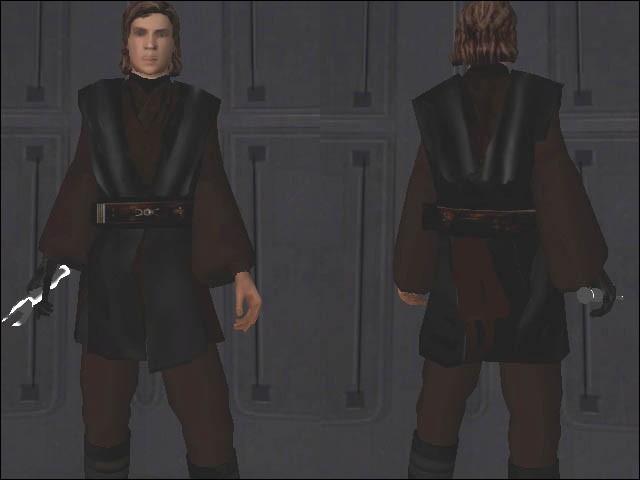 This is Anakin before turning to the darkside in episode 3. The robes look black in the screenshot but are dark brown ingame.