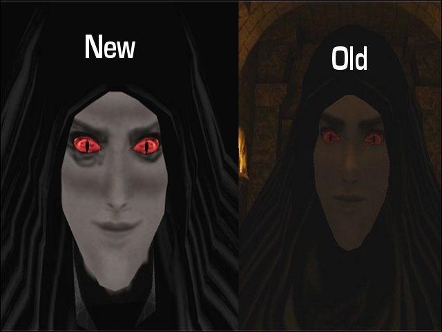 to look less "young" and more "sinister", rather than the mostly emotionless version prior. The robes remain unchanged from the original
