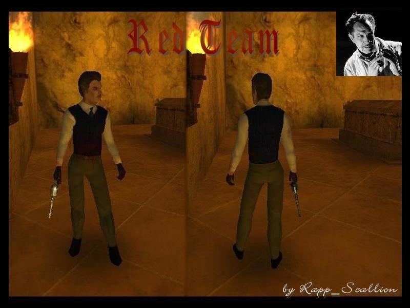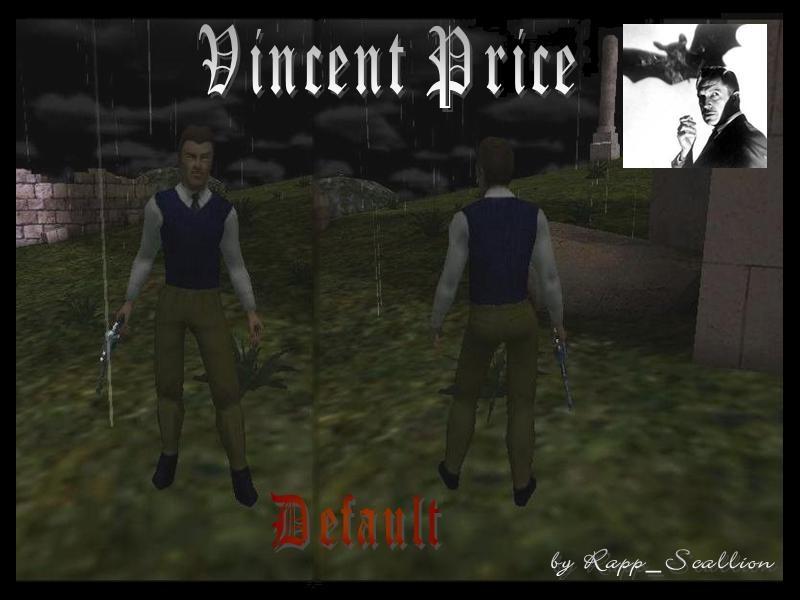DESCRIPTION: This is a skin of Vincent Price. There are four different skins: regular Vincent, black and white Vincent, a ghost Vincent (blue team skin) and a bloodified, surgical type Vincent with gloves (red team skin).