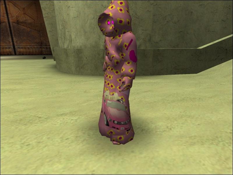 Description: Why did I make this... Well I thought it would be funny to overright these 2 files...and make them look really stupid and funny. Ok these file OVERRIGHT the original, so DO NOT download these unless you want a little giggle every time you see these people. Whenever you see a human merc they will be coverd in those PJs... even the npcs will. Same thing with the jawa. Its also very hard to take the Human Mercs seriosly after you get this file. LOL. "Hey I bet ther's a bounty on this jedi" "Come on lets get him!" and the guys in girl PJs...LOL