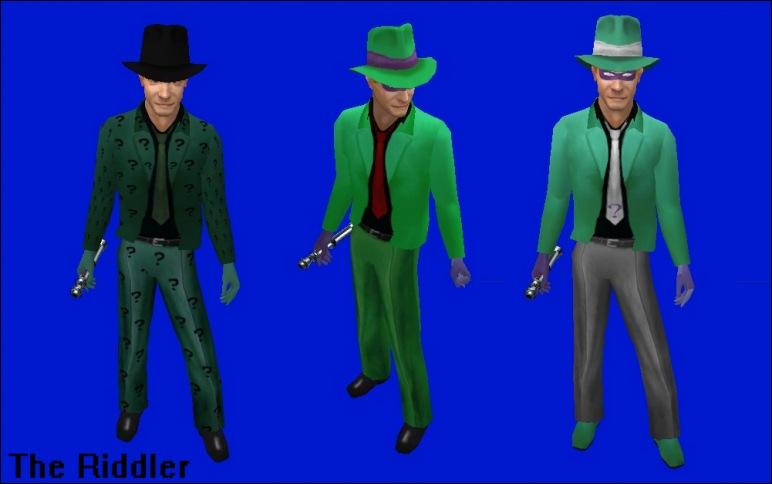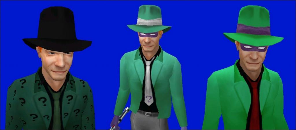 The Riddler's red skin is a simple color change. The green has been changed to hurt