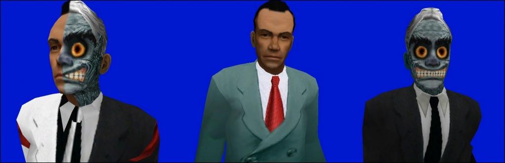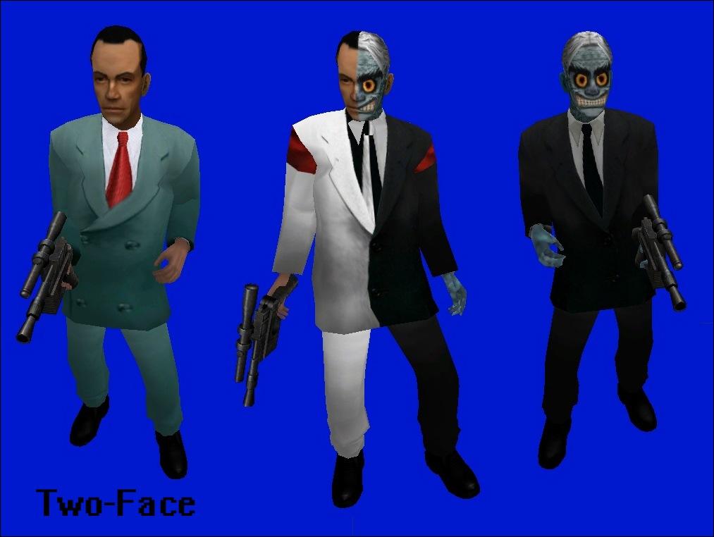 amount of time. The blue skin is Harvey Dent (duh). The default skin is.. well..