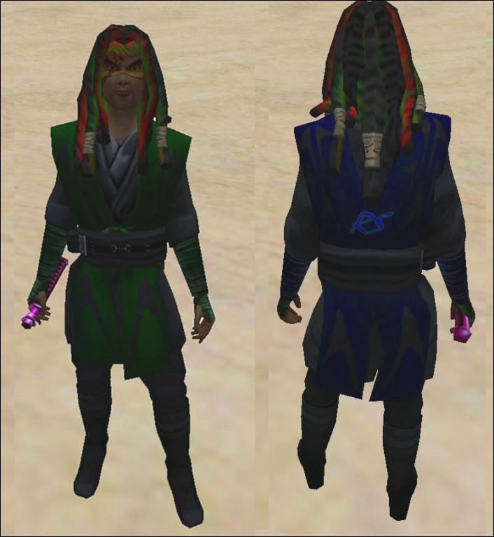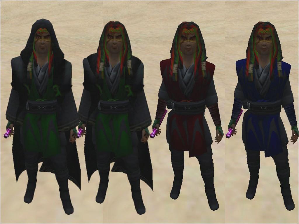 one with a robe with the hood up then 1 without it up then there is the green skin